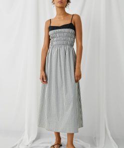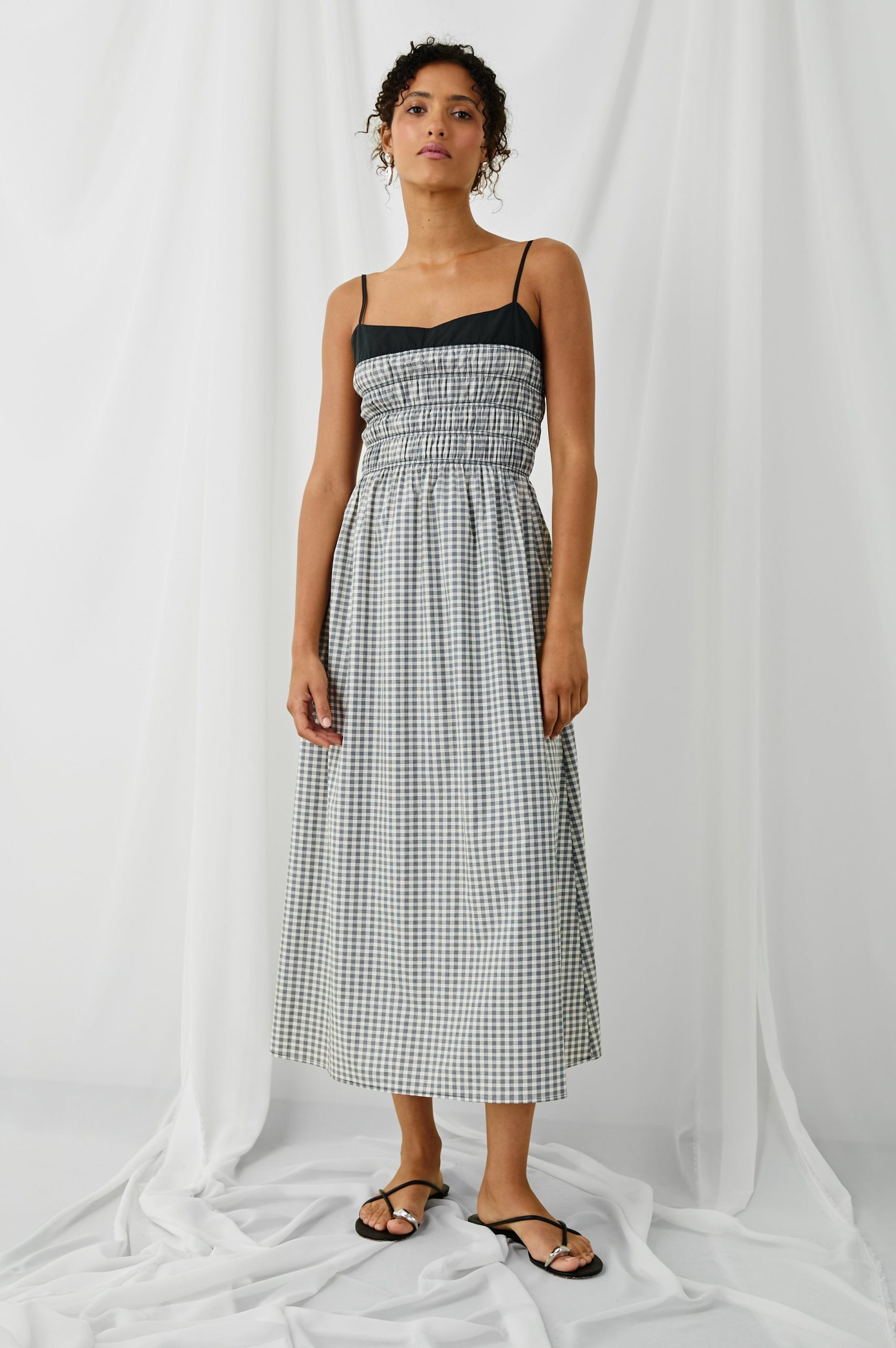 Inspired by French screen sirens, the Primrose features a shirred bodice with a midi-length skirt. Crafted from a heavy cotton poplin, this is a lightweight, ultra-breathable style.