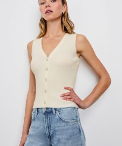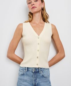 The Rosa is a ribbed vest crafted from a luxe cotton blend for a supple hand-feel. Complete with natural shell buttons and a body-contouring fit, this vest is a timeless piece to complete capsule wardrobe.