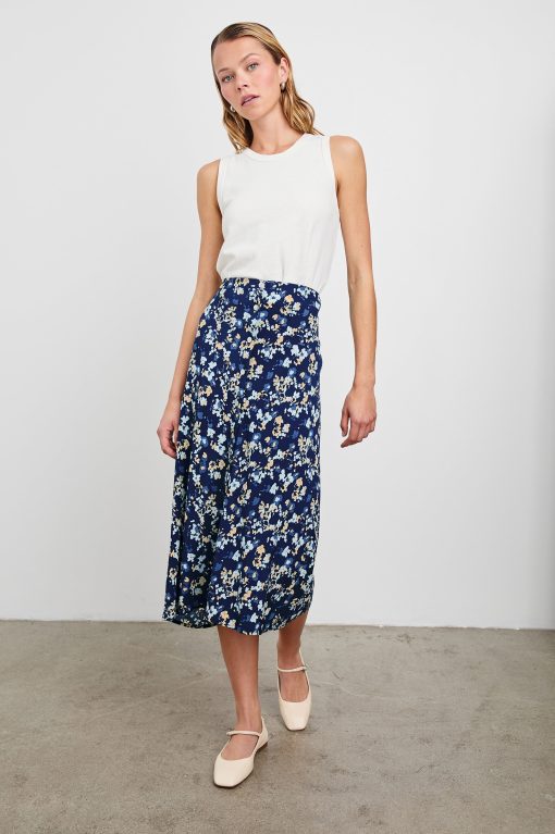 The Rosetta is a 90s-inspired slip skirt, crafted from luxe satin-back crepe with an intricate floral print. Finished with full-length buttons and a hidden elastic waistband, this high-rise midi is an ultra-feminine staple for any season.