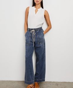 The Ryan is a lounge-inspired closet classic, crafted from ultra-soft luxe linen. This high-rise pant features a shirred waist and corded drawstring for a customizable fit, as well as a wider leg for breathability.