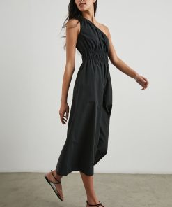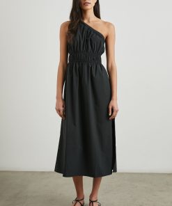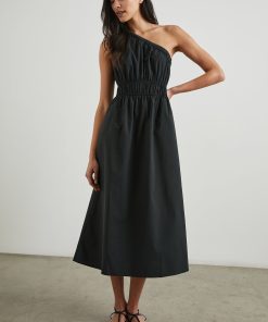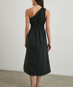 An asymmetrical dream. The Selani Dress is made from crisp cotton poplin and features a one-shoulder strap that cuts across the chest, cinched elastic at the waistband, and a flowy a-line skirt silhouette.