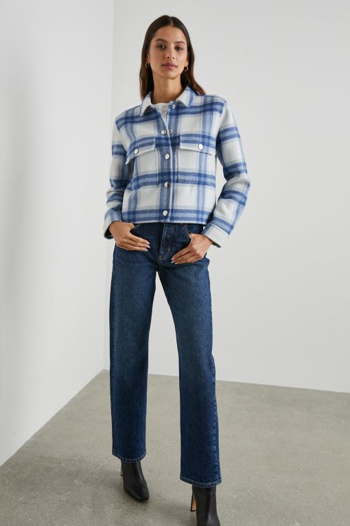 This easy to layer, throw-on-and-go piece will effortlessly take you from day to night in style. Made from a heavy wool blend, this cozy jacket features large faux horn buttons, spread collar, and oversized flap pockets with button closures at chest.