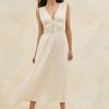 Crafted from luxe heavy linen—and fully lined—the Susana mini dress is a can’t-miss. Beaded details adorn the adjustable straps, and delicate shell embroidery lines the hem.