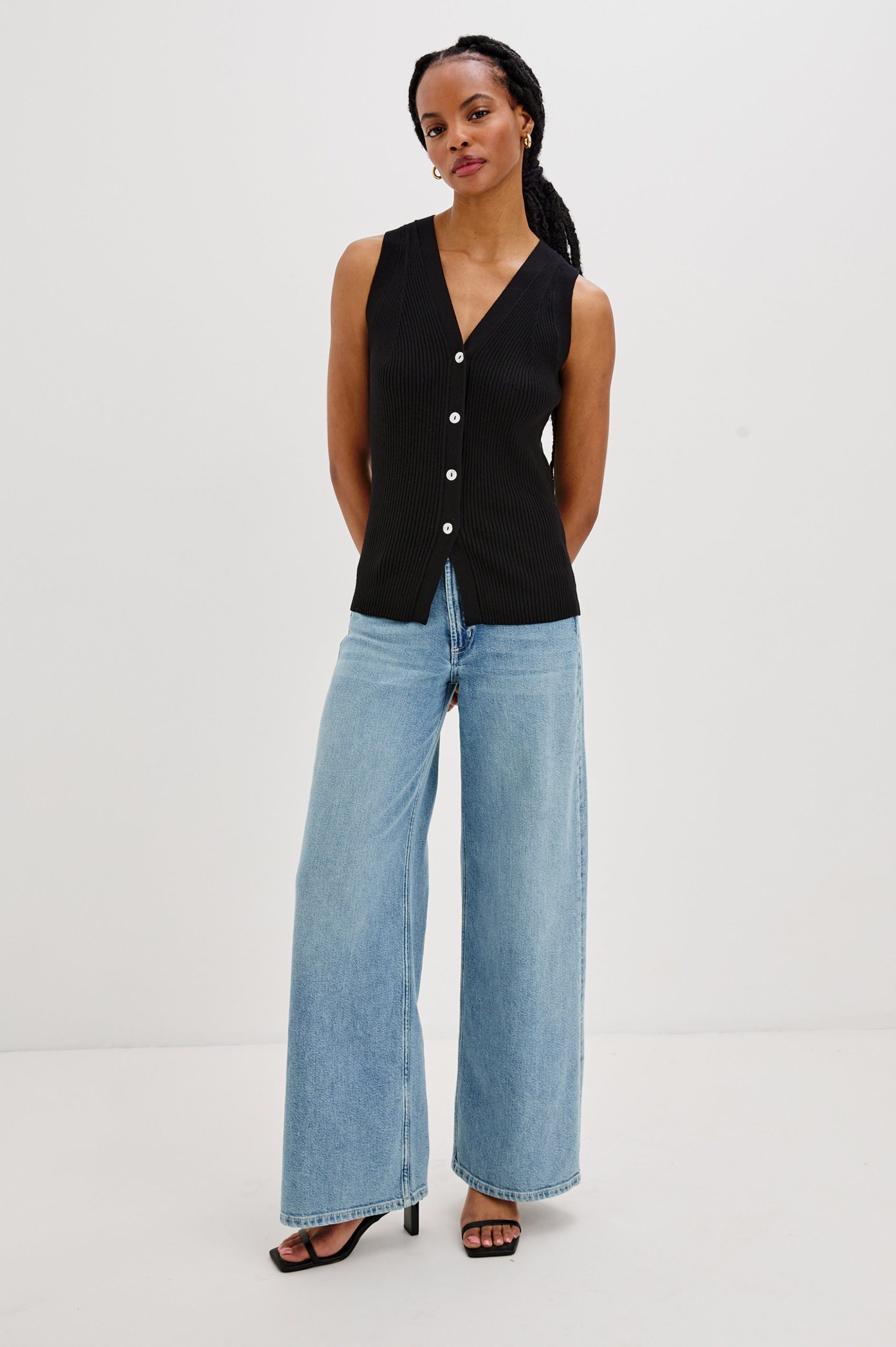 The best vest you can get your hands on this season. The Tatia is made from cozy luxe cotton, and features a v-neckline and full-length buttons.