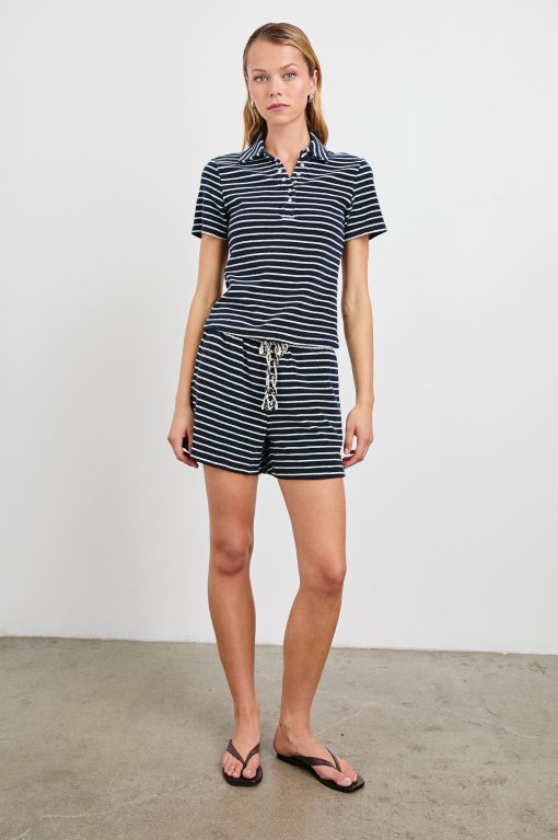Intended for outdoor adventures, the teddy is a nautical-inspired short crafted from fast-drying terry towel. It has a high-rise fit and shorter inseam, with a drawstring waist for an adjustable fit.