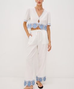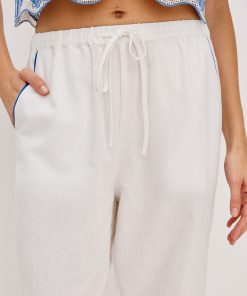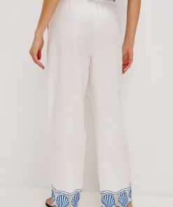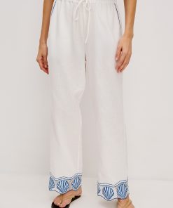 The Tildi pant is made from luxe linen fabric, and features a relaxed fit and drawstring closure. Finishing touches include a scalloped hem with delicate seashell embroidery.