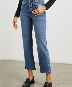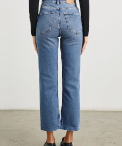 Your go to straight leg. The Topanga Crop is a high waisted vintage inspired straight with a button fly and a cropped inseam. Pure Indigo is a deep blue wash with an asymetrical hem.