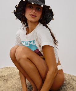 Elevate any look with the Crete bucket hat, crafted from lightweight rattan and adorned with intricate shell details.